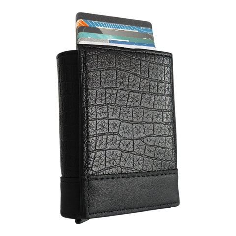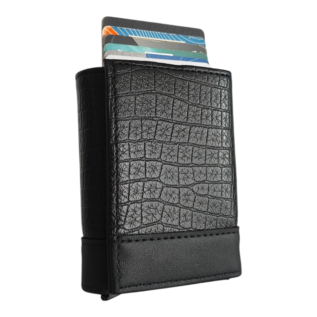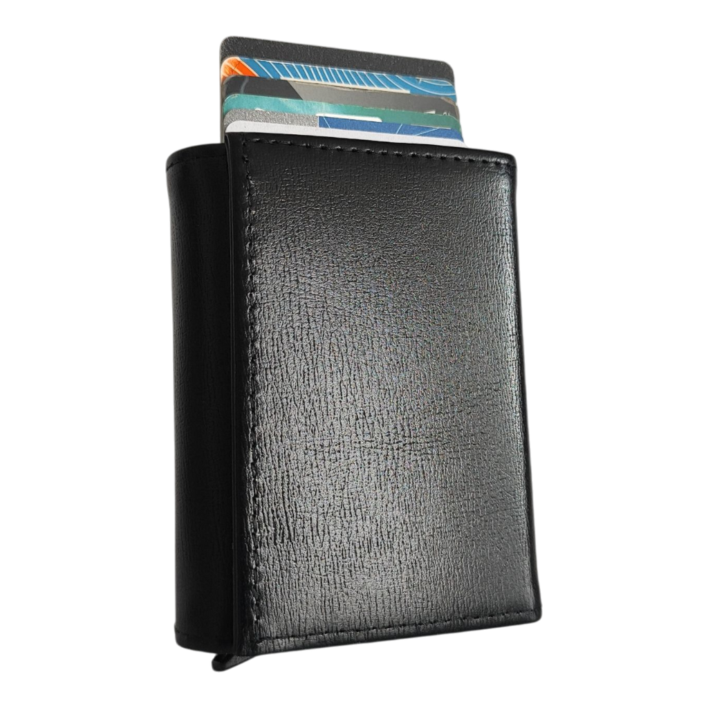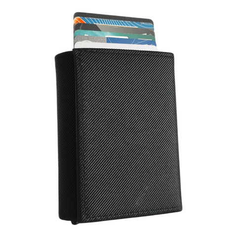 La Astro Wallet tiene capacidad para 8–9 tarjetas con sistema de despliegue rápido, protección RFID y un amplio compartimento horizontal para billetes. Ideal para mantener tus pertenencias organizadas y protegidas.