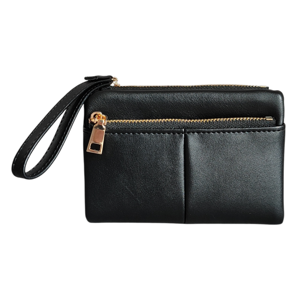 La Chambery Small ofrece capacidad para 6 tarjetas, cierre de broche, dos ranuras para facturas, dos compartimentos con cierre zipper para monedas y un amplio espacio horizontal para billetes. Ideal para mantener tus pertenencias organizadas con estilo.