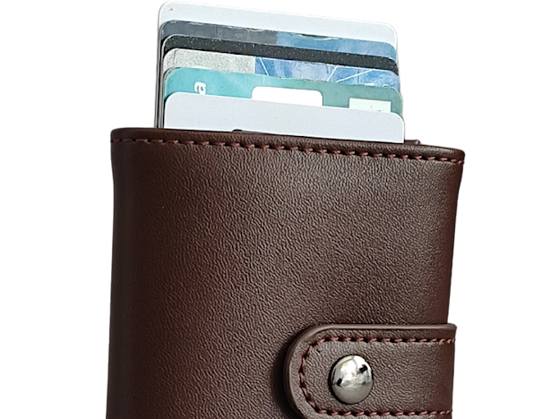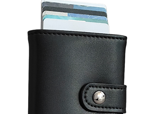 Organización y estilo en tu bolsillo. Esta cartera de cuero genuino ofrece capacidad para 8 tarjetas, gran compartimento horizontal para billetes y protección RFID para mayor seguridad. Cierre con broche que combina practicidad y elegancia.
