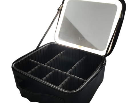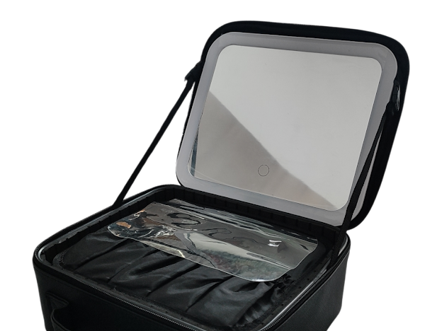 Todo lo que necesitas para tu maquillaje, en un solo estuche. La Glam Box es perfecta para viajes, uso diario o profesionales del maquillaje. Incluye un espejo LED táctil desmontable con tres tipos de luz (fría, cálida y neutra), divisores y compartimentos ajustables para todo tipo de productos, y un divisor extraíble con 10 ranuras para brochas. Además, cuenta con correas laterales para ajustar el ángulo del espejo. Compacta, práctica y fácil de transportar.